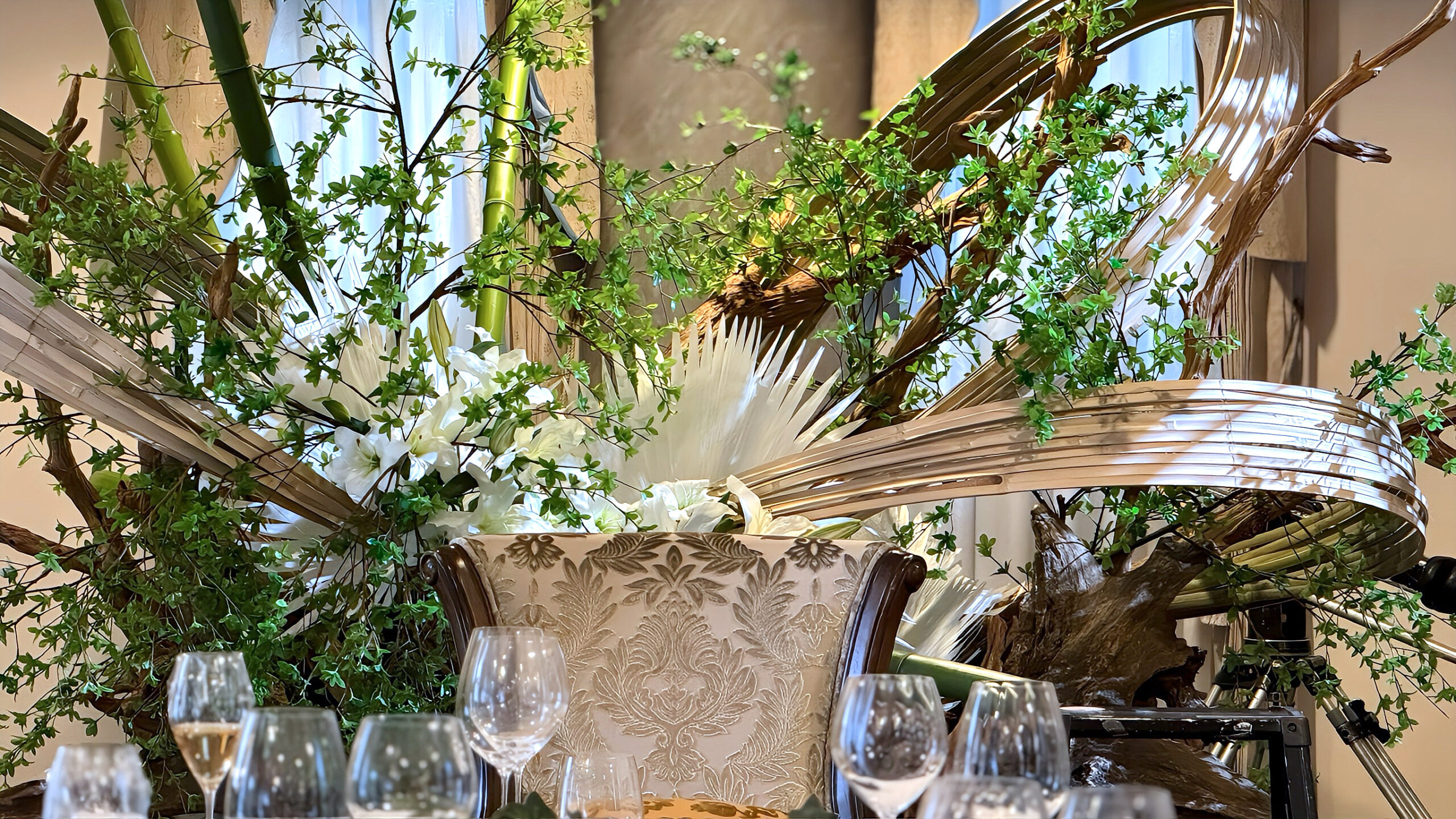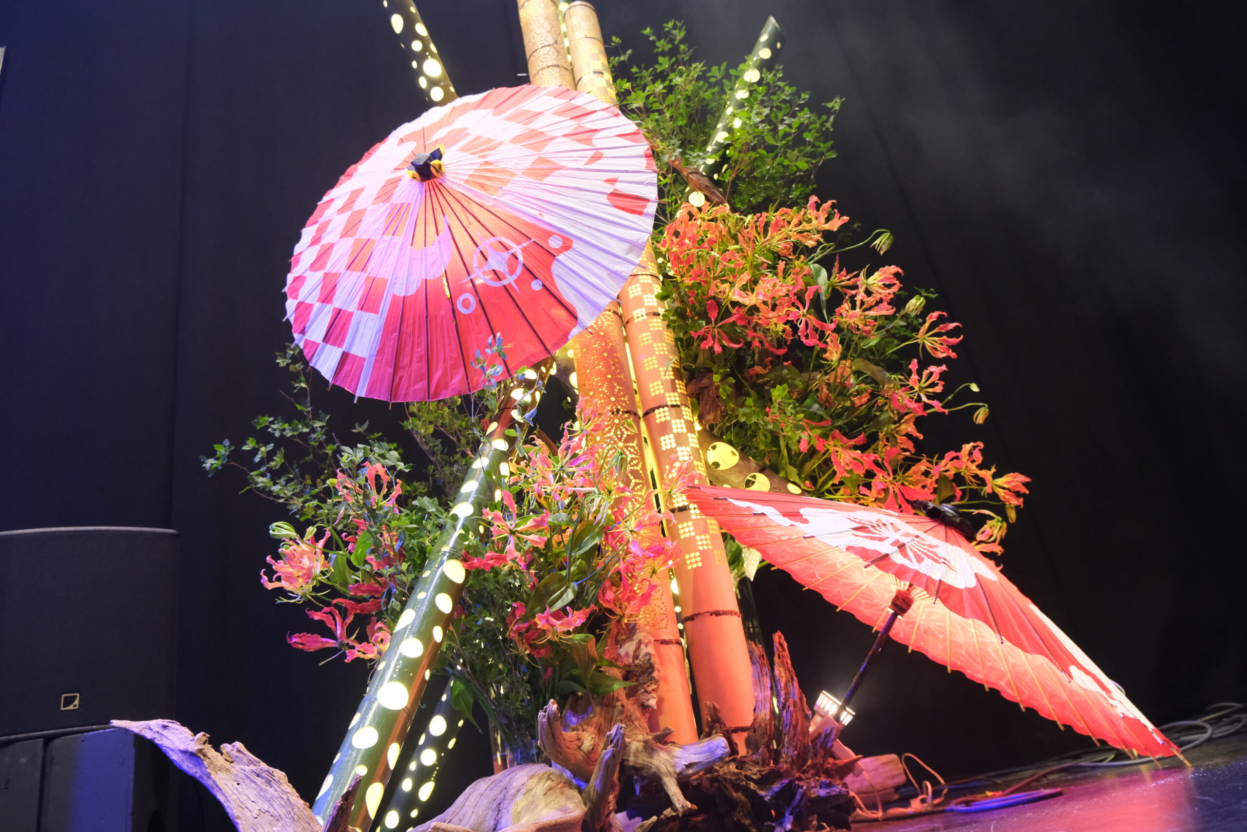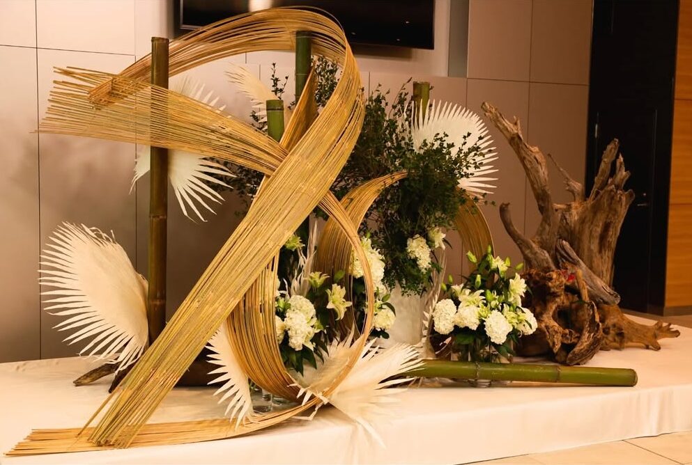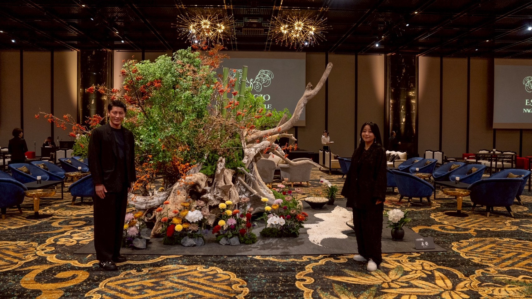 オープニングイベントの3日間、メイン広間の空間装飾を華道家・美榮(BIEI)が担当。