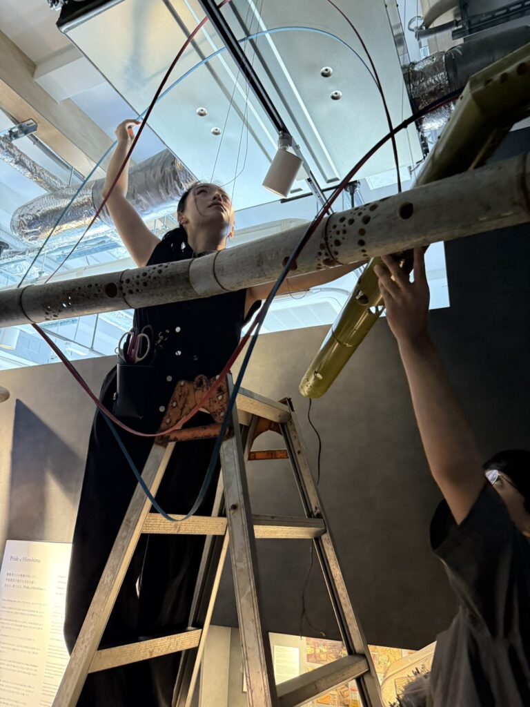 現場条件や導線、光の入り方、全体のバランスを確認しながら制作・設営を行います。